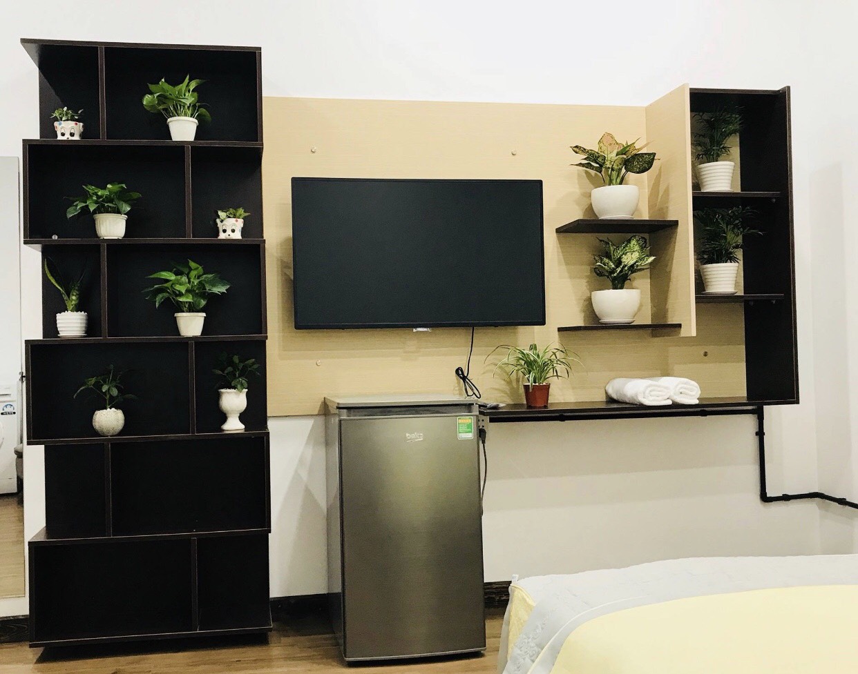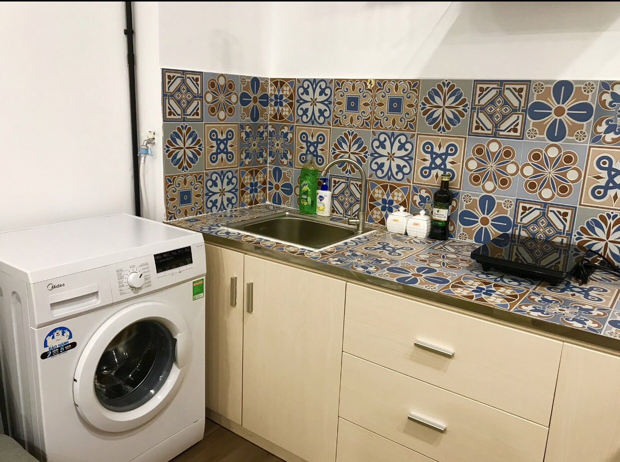 Căn hộ được trang bị đầy đủ tiện nghi mới : Máy giặt, tủ lạnh, máy nước nóng, tivi , bếp, lò vi sóng, giường, nệm…