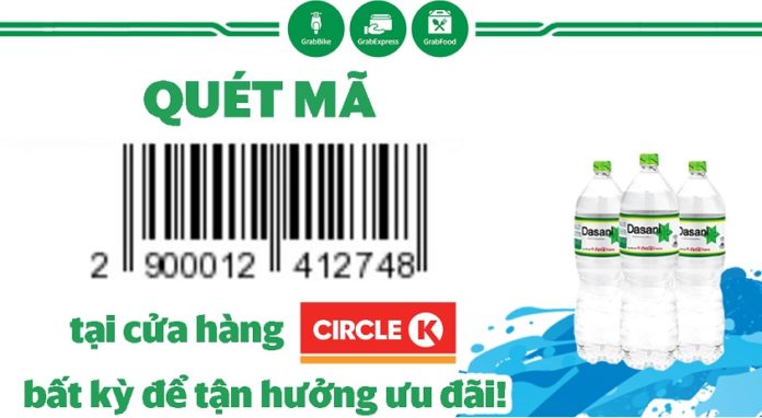 Bác tài công nghệ đang chạy cho hãng Grab tới bất cứ Circle K và chọn nước suối Dasani 1lít5. Đưa App Grab tài xế & Barcode dưới đây khi trả tiền để được có giá ưu đãi.